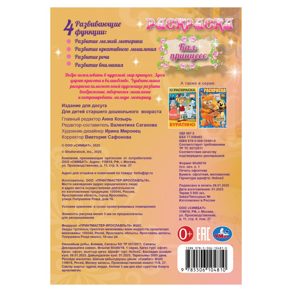 Книга "Бал принцесс. Раскраска. 145х210 мм. Скрепка. 16 стр. Умка в кор.50шт". Iздательство: Умка.