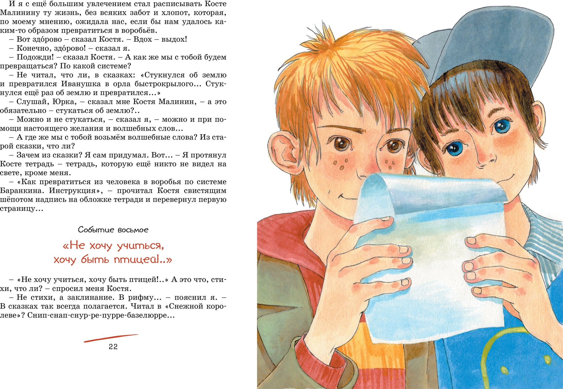 Handling time: 14 days Баранкин, будь человеком! Медведев В. Яркая ленточка Начался новый учебный год, и Юра Баранкин подводит своих одноклассников чуть ли не в первый день. Все ему твердят «Баранкин, ну будь человеком!» А он не хочет, и вообще ему надоело быть человеком. Вот бы стать воробьём! Сидишь себе на веточке да песни поёшь. И тут фантастическим образом желание Юры Баранкина сбывается…