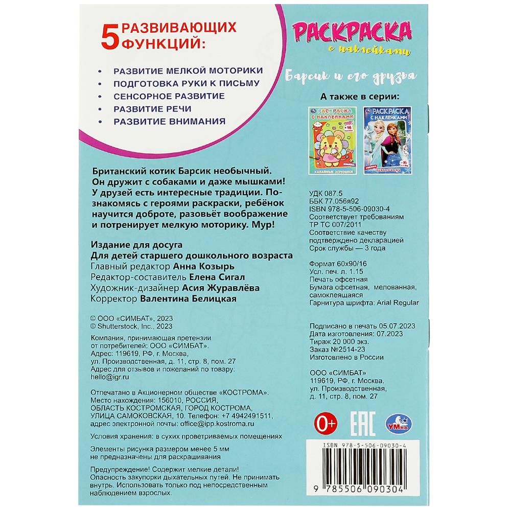 Книга "Барсик и его друзья. Наклей и раскрась. 145х210 мм. Скрепка. 16 стр. Умка в кор.100шт". Iздательство: Умка.