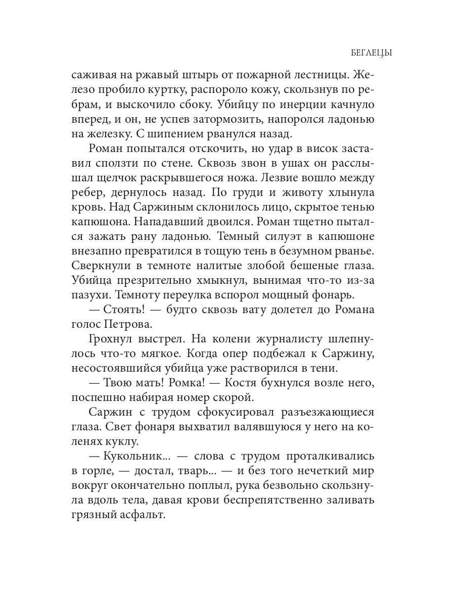 Handling time: 19 days Автор: Васильченко О., «Беглецы»: Отправляясь в Туманный, журналист криминальной хроники Роман Саржин надеялся отдохнуть от изматывающего расследования и восстановиться после ранения. Он и подумать не мог, что незавершенное дело настигнет его даже здесь, тесно переплетя реальность с мрачными городскими легендами. И теперь главное помнить: пытаясь докопаться до истины, подумай сначала, как будешь вылезать из могилы.