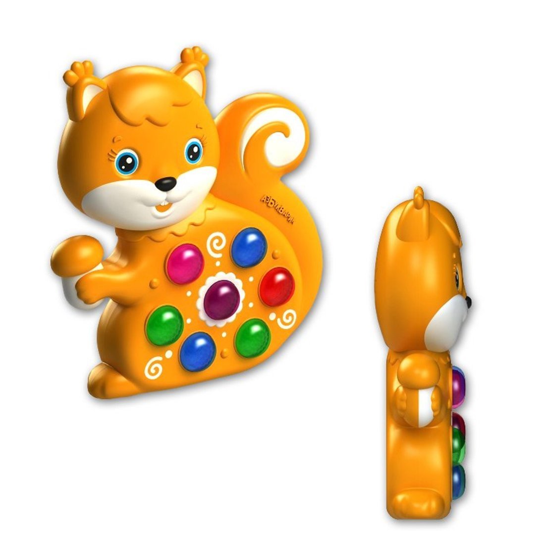 Handling time: 19 days Музыкальная игрушка в виде белочки из серии «Веселушки» подарит малышу много веселья, порадует разноцветными мигающими огоньками и будет способствовать его гармоничному развитию. Нажимая на кнопочки, малыш сможет послушать добрые песенки и мелодии («Сидит белка на тележке», «Танец зверят», «Белка», «В лесу так весело гулять», «Во саду ли, в огороде», «Белки-шалунишки» / «Кабы не было зимы», «Спи, моя радость, усни», танцевальные мелодии), весёлые звуки и даже голоса зверят! В игрушке используются элементы русского народного творчества — художественный образ белочки, потешки, мелодии. Всё это разносторонне воздействует на малыша, учит образно мыслить, закладывает основы эстетической культуры. Играя с весёлой белочкой, детки будут развивать мелкую моторику и координацию движений, музыкальный слух и чувство ритма, память и фантазию.Игрушка работает от 3-х батареек типа ААА на 1,5 V (входят в комплект).Материал изготовления: пластмасса.Рекомендованный возраст: 3 года +