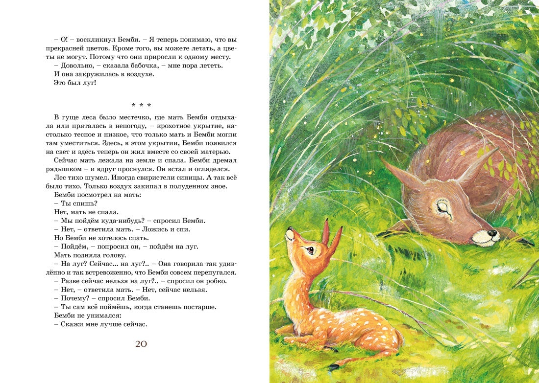 Handling time: 14 days Сказочная повесть австрийского писателя Феликса Зальтена «Бемби» – про маленького оленёнка, который познаёт мир, такой большой и такой разнообразный. Только столкнувшись с человеческой жестокостью, он начинает понимать, что жизнь полна бед и опасностей и надо научиться их преодолевать. Книга знакомит с природой и прививает любовь к ней, а в добрых сердцах рождает чуткость и сострадание.Для среднего школьного возраста.