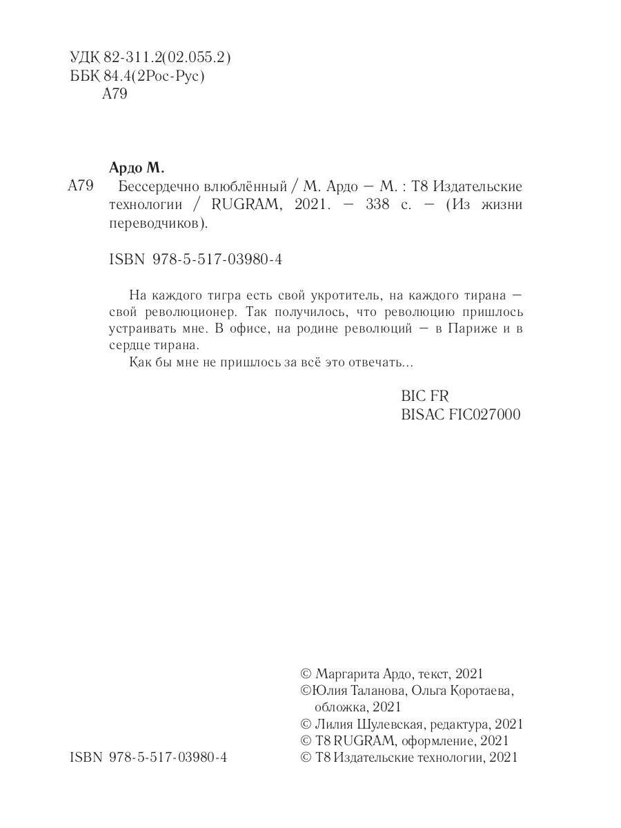 Handling time: 19 days Автор: Ардо Маргарита, «Бессердечно влюбленный»: На каждого тигра есть свой укротитель, на каждого тирана – свой революционер. Так получилось, что революцию пришлось устраивать мне. В офисе, на родине революций – в Париже и в сердце тирана. Как бы мне не пришлось за всё это отвечать...