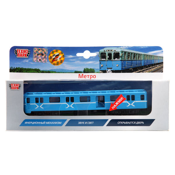 ВАГОН МЕТРО "ТЕХНОПАРК" МЕТАЛЛ. ИНЕРЦ. СВЕТ+ЗВУК, ОТКРЫВ. ДВЕРИ В РУСС. КОР. 18,5СМ в кор.2*24шт
