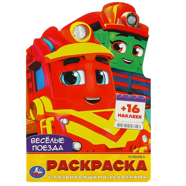 Книга "Весёлые поезда. Раскраска с развивающими заданиями. 145х210мм. 16 стр. + 16 наклеек. Умка в кор.50шт". Iздательство: Умка.