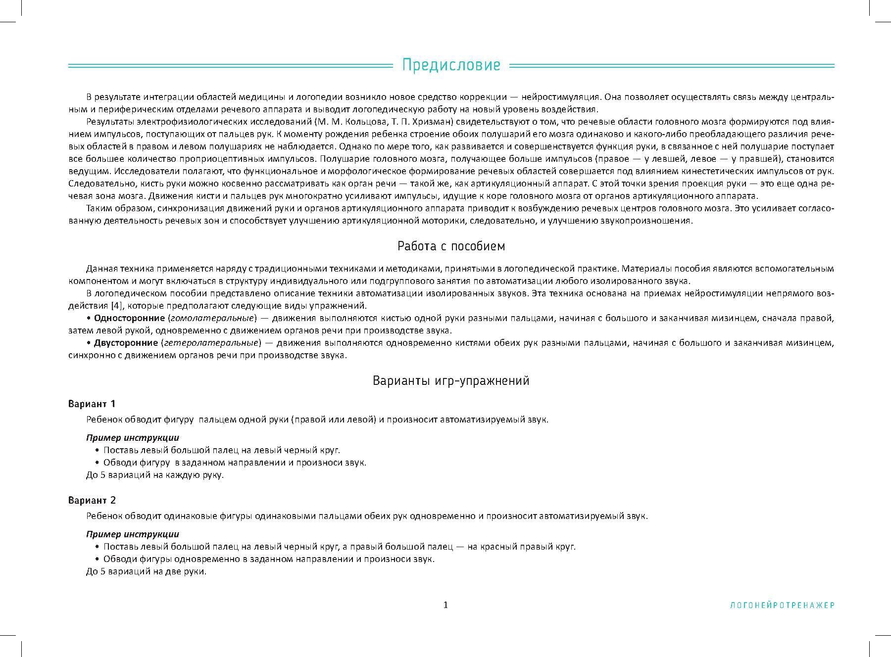 Handling time: 19 days В логопедическом пособии представлено описание занимательной техники автоматизации изолированных звуков. Данная техника основана на приемах нейростимуляции, которые предполагают совместные одновременные движения пальцев рук и органов артикуляции. Техника применяется наряду с традиционными техниками и методиками, принятыми в логопедической практике. Материалы пособия являются вспомогательным компонентом и включаются в структуру индивидуального или подгруппового занятия по автоматизации звука. Пособие предназначено для практикующих логопедов, воспитателей ДОУ и родителей детей с нарушением звукопроизношения.
