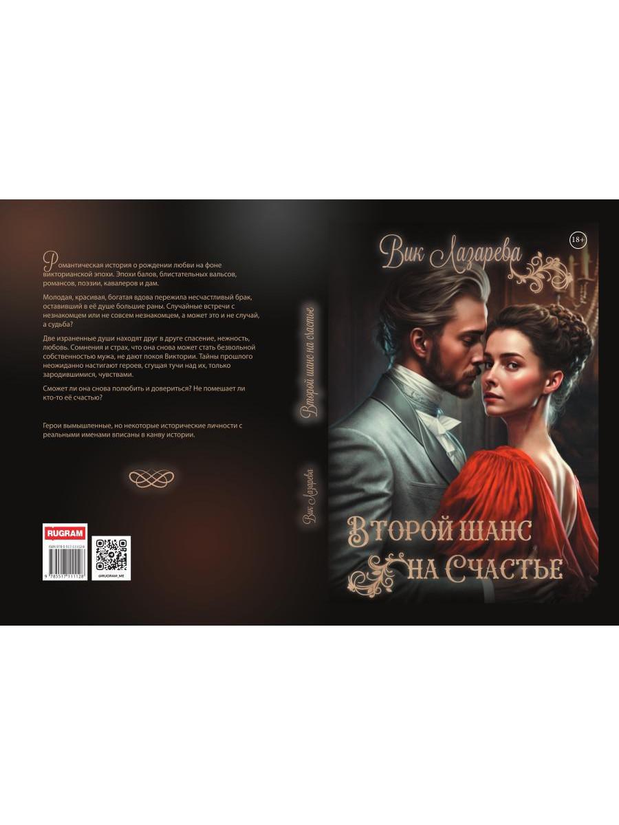 Handling time: 19 days Автор: Лазарева В., «Второй шанс на счастье»: Романтическая история о рождении любви на фоне викторианской эпохи. Эпохи балов, блистательных вальсов, романсов, поэзии, кавалеров и дам. Молодая, красивая, богатая вдова пережила несчастливый брак, оставивший в её душе большие раны. Случайные встречи с незнакомцем или не совсем незнакомцем, а может это и не случай, а судьба? Две израненные души находят друг в друге спасение, нежность, любовь. Сомнения и страх, что она снова может стать безвольной собственностью мужа, не дают покоя Виктории. Тайны прошлого неожиданно настигают героев, сгущая тучи над их, только зародившимися, чувствами. Сможет ли она снова полюбить и довериться? Не помешает ли кто-то её счастью? Герои вымышленные, но некоторые исторические личности с реальными именами вписаны в канву истории.