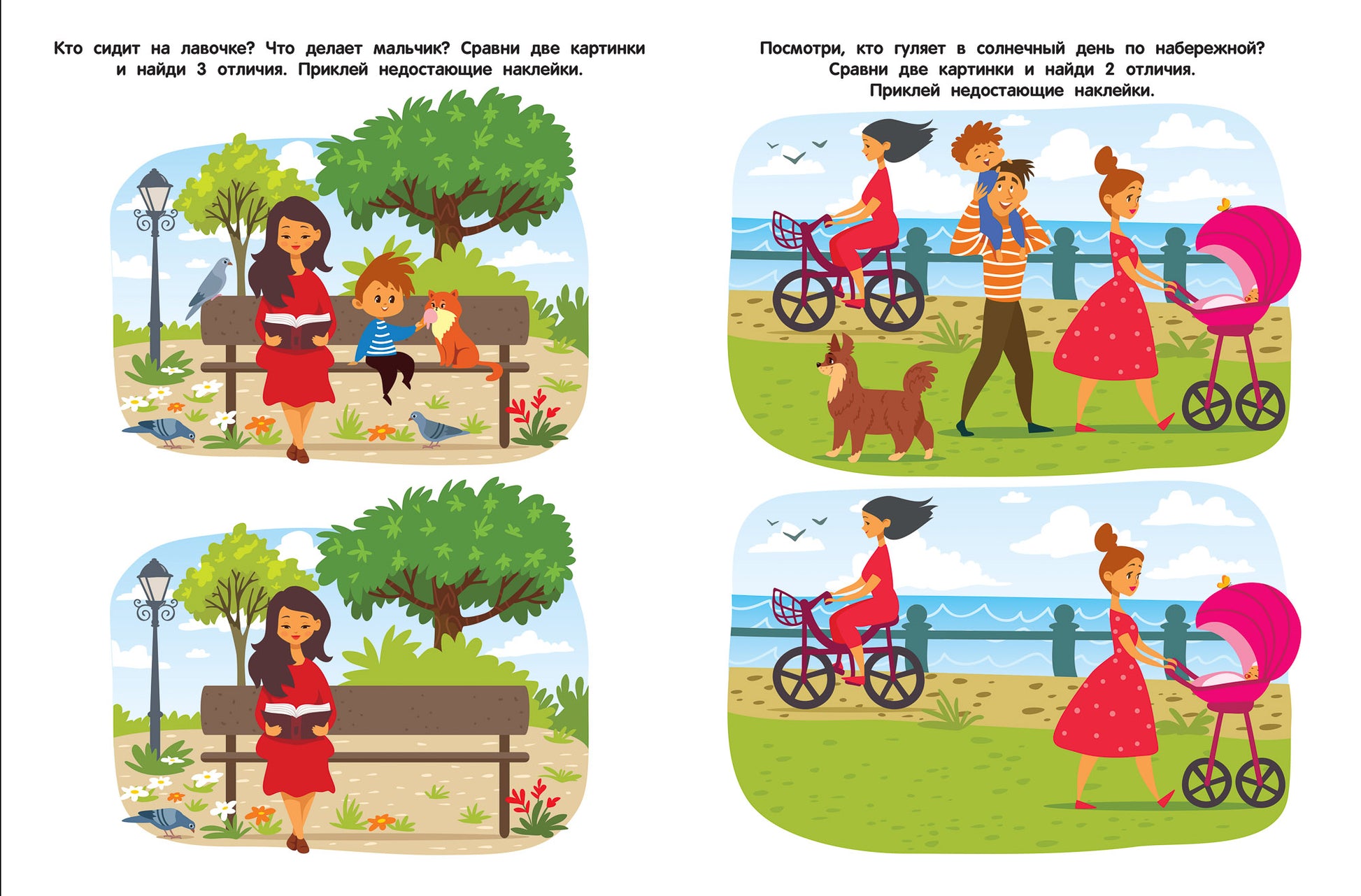 Эта серия создана для самых внимательных и наблюдательных. Посмотри, две картинки на странице только на первый взгляд одинаковые. На самом деле в них есть отличия, и тебе предстоит их отыскать! Выбери подходящие наклейки и дополни картинку недостающими деталями так, чтобы изображения стали одинаковыми. Вот так полезная игра может быть ещё и невероятно увлекательной! В книгах серии тебя ждут разнообразные сюжеты, задания и многоразовые наклейки.