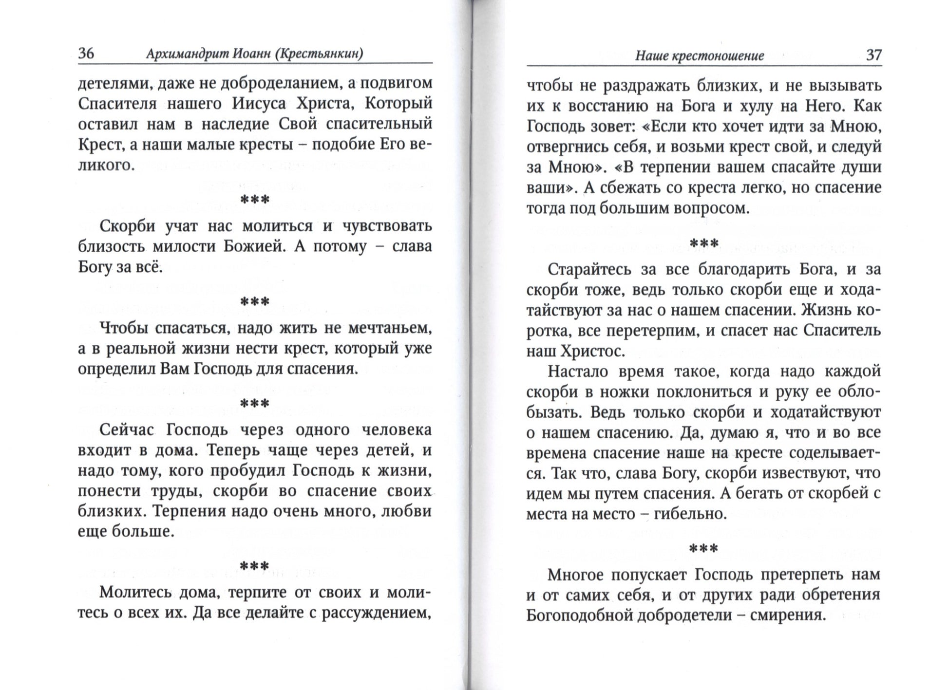 Handling time: 19 days Архимандрит Иоанн (Крестьянкин; 1910-2006) — священнослужитель Русской Православной Церкви, архимандрит. Около сорока лет был насельником Псково-Печерского монастыря. Один из наиболее почитаемых старцев Русской Православной Церкви. Труды архимандрита Иоанна, из которых взяты высказывания для данной книги, содействуют духовному возрождению общества и рассматриваются членами Церкви как практические пособия в деле христианского спасения. В книге также приводятся акафист Пресвятой Богородице и православные молитвы. Издание рассчитано на широкий круг православных читателей, в частности на тех, кому интересно и дорого литературное наследие отца Иоанна.«Хотим ли мы, не хотим ли соглашаться со своей участью и положением, все равно будет так, как даст Промысел Божий, предзря нас теперь и в нашем будущем и ведя нас к исполнению добровольно взятых на себя обетов. И все это во благо нам и во спасение, и в будущую радость. И по опыту скажу, что чем скорее мы сердцем примем Богом данное, тем легче нам будет нести благое иго Божие и бремя Его легкое. Тяжелым оно становится от нашего противления внутреннего.»-- Архимандрит Иоанн (Крестьянкин)
