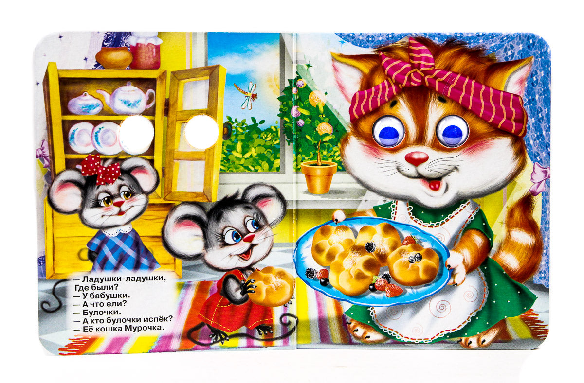Handling time: 24 days Замечательная серия картонных книг с глазками обязательно порадует вашего малыша. Такая книжка станет любимой игрушкой ребёнка. Страницы сделаны из плотного картона, поэтому издание прослужит долго, не порвётся и не испортится. В книгах серии вы найдёте самые любимые сказки, стихи и потешки.