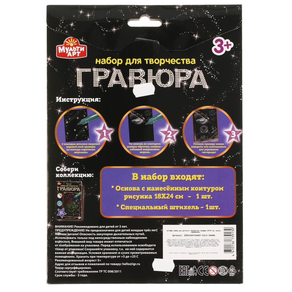 Набор для творчества «Гравюра. Акула» ТМ «МультиАрт» - отличный подарок для ребёнка, который будет способствовать развитию его творческих способностей: