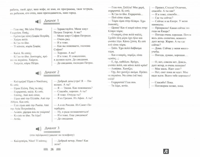 Handling time: 19 days Самоучитель позволит всем желающим самостоятельно овладеть греческим языком, наработать грамматическую базу, а благодаря текстам, диалогам, упражнениям и аудиозаписям сформировать навыки разговорной речи. В книгу входят наиболее употребляемые слова, а также отрывки из произведений для самостоятельного чтения и перевода. Желаем успехов в изучении!