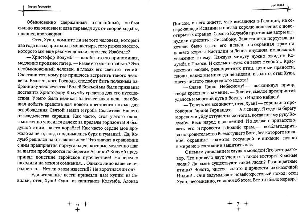 Handling time: 19 days Автор: Гранстрем Эдуард, «Два героя»: В романе «Два героя» рассказывается об открытии Колумбом Нового Света, а также о его беспощадных «наследниках» — испанских конкистадорах, огнем и мечом захвативших Америку. Одним из них был Фернандес Кортес, покоривший Мексику и ради золота уничтоживший древнейшую культуру инков. Роман является вольной переработкой исторического романа Карла Фалькенгорста «Aus der Zeit der Entdeckung Amerikas» (1891).