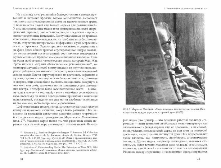 Handling time: 14 days Мы живем в революционную эпоху коммуникационного изобилия, когда многие инновации в области медиа, начиная со спутникового вещания и заканчивая умными очками или электронными книгами, вызывают немалое восхищение. В политической сфере большие надежды возлагаются на цифровую демократию, киберграждан и электронное правительство. Автор считает, что во многих весьма важных отношениях коммуникационное изобилие радикально меняет очертания нашей жизни и нашей политики, как правило, в лучшую сторону. Однако он поднимает вопрос, почему так мало внимания уделяется тревожным противоположным тенденциям, декадентским процессам в области медиа, которые поощряют общественное молчание и концентрацию неограниченной власти, ослабляя тем самым дух и силы демократии. Исследуя примеры сложного государственного надзора, рыночной цензуры, тактик раскручивания и теневого пиара, Кин пытается понять эти тенденции, выяснить, как лучше всего работать с ними, и утверждает, что "декаданс медиа" наносит значительный вред общественной жизни.2-е издание.