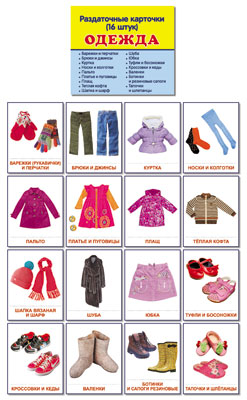 На обороте каждой карточки - название одежды на русском и английском языках.