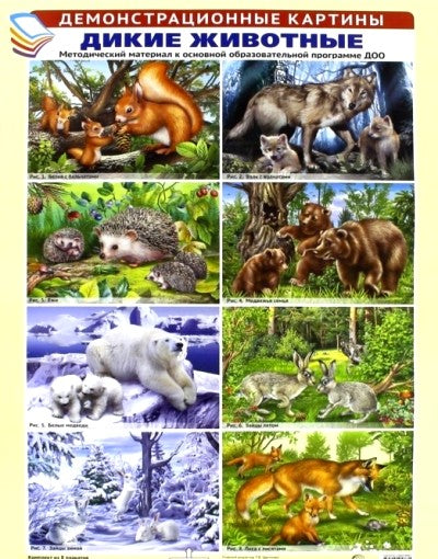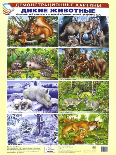 Демонстрационные картины А3. Дикие животные. Методический материал к основной образовательной программе ДОО (8 картин А3+, этикетка с текстом заданий на обороте)