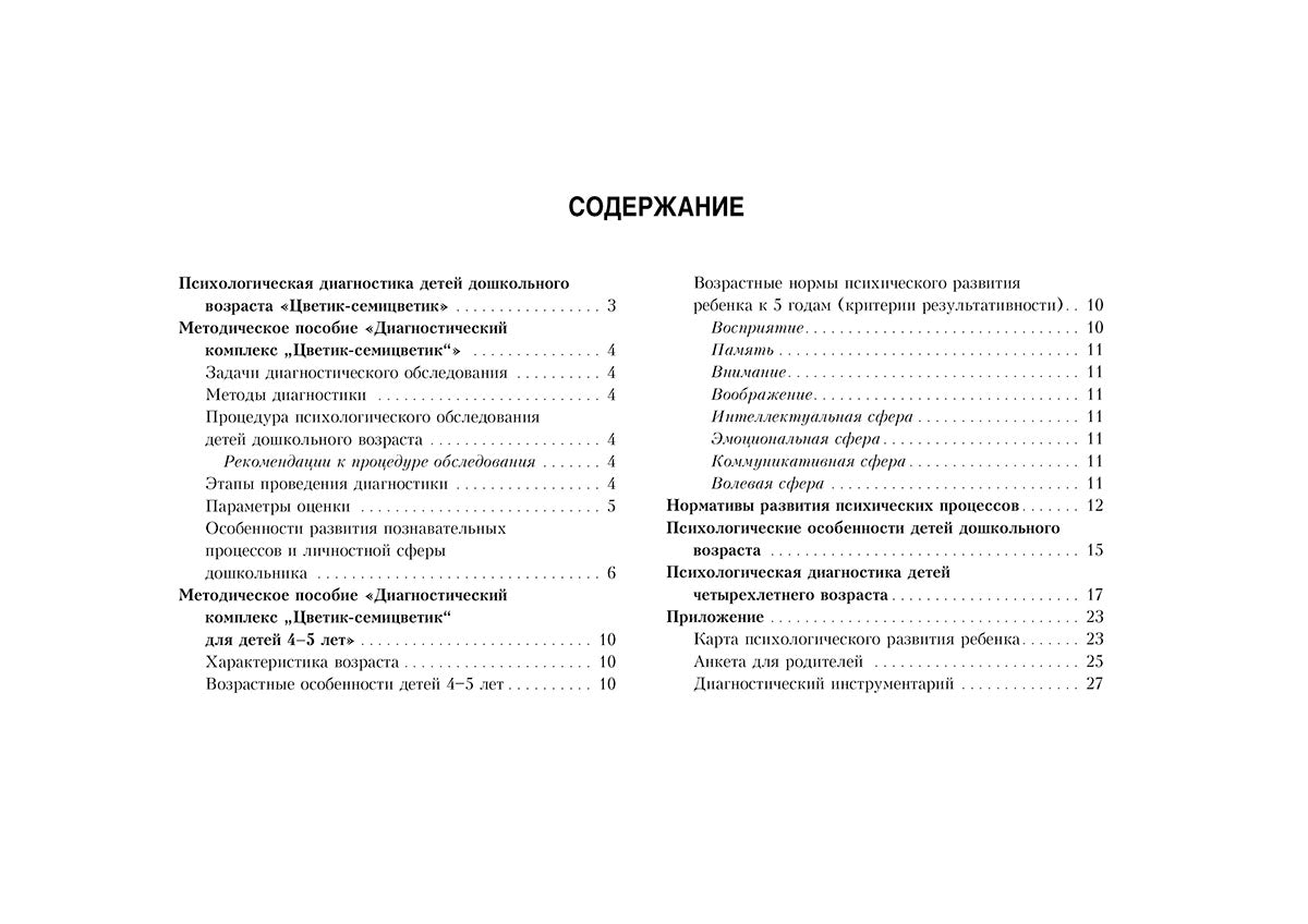 Handling time: 24 days Диагностический альбом «Цветик-семицветик» — это комплекс диагностических методик, предназначенный для исследования развития психических процессов и индивидуальных особенностей детей дошкольного возраста. В альбоме подробно описана процедура психологической диагностики, рассмотрены психологические особенности детей дошкольного возраста, а также приведены возрастные нормы психического развития дошкольников: восприятия, памяти, внимания, воображения, интеллекта и психофизиологической сферы. Методические рекомендации сопровождаются объемным диагностическим инструментарием.