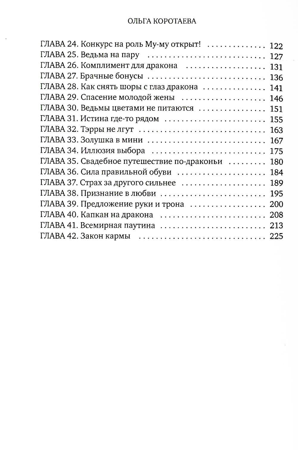 Handling time: 19 days Когда коллега из зависти прибегает к колдовству, которое оборачивается против неё, я тоже не уклоняюсь от последствий. Теперь мы обе в другом мире! Я - ведьма, а она - мой фамильяр. Как нам вернуться домой, если надменный красавец-дракон вбил себе в голову, что я - его истинная пара?- Позвольте представиться. Моё имя Лайд КоллТэрр.- А меня зовут Евгения Морозова. - Девушка схватила мою кисть и, сжав её, довольно сильно тряхнула. - Приятно познакомиться!Глядя на руку, в которую вцепилась ведьма, я гадал, зачем гостья так поступила. Может, это часть заклинания? Нет, это бессмысленно.- Вы пытаетесь меня соблазнить? - поинтересовался я, сделав единственный логичный вывод. - Я согласен. Пять причин купить 1Доброе фэнтези о попаданке, в котором есть место юмору. 2Ненавязчивая любовная линия придется по душе фанатам жанра. 3Находчивая главная героиня, которая найдет выход даже из самой безвыходной ситуации. 4Забавные ситуации, в которые попадает Евгения, заставят вас улыбнуться. 5До самого конца вы будете гадать над личностью настоящего злодея.