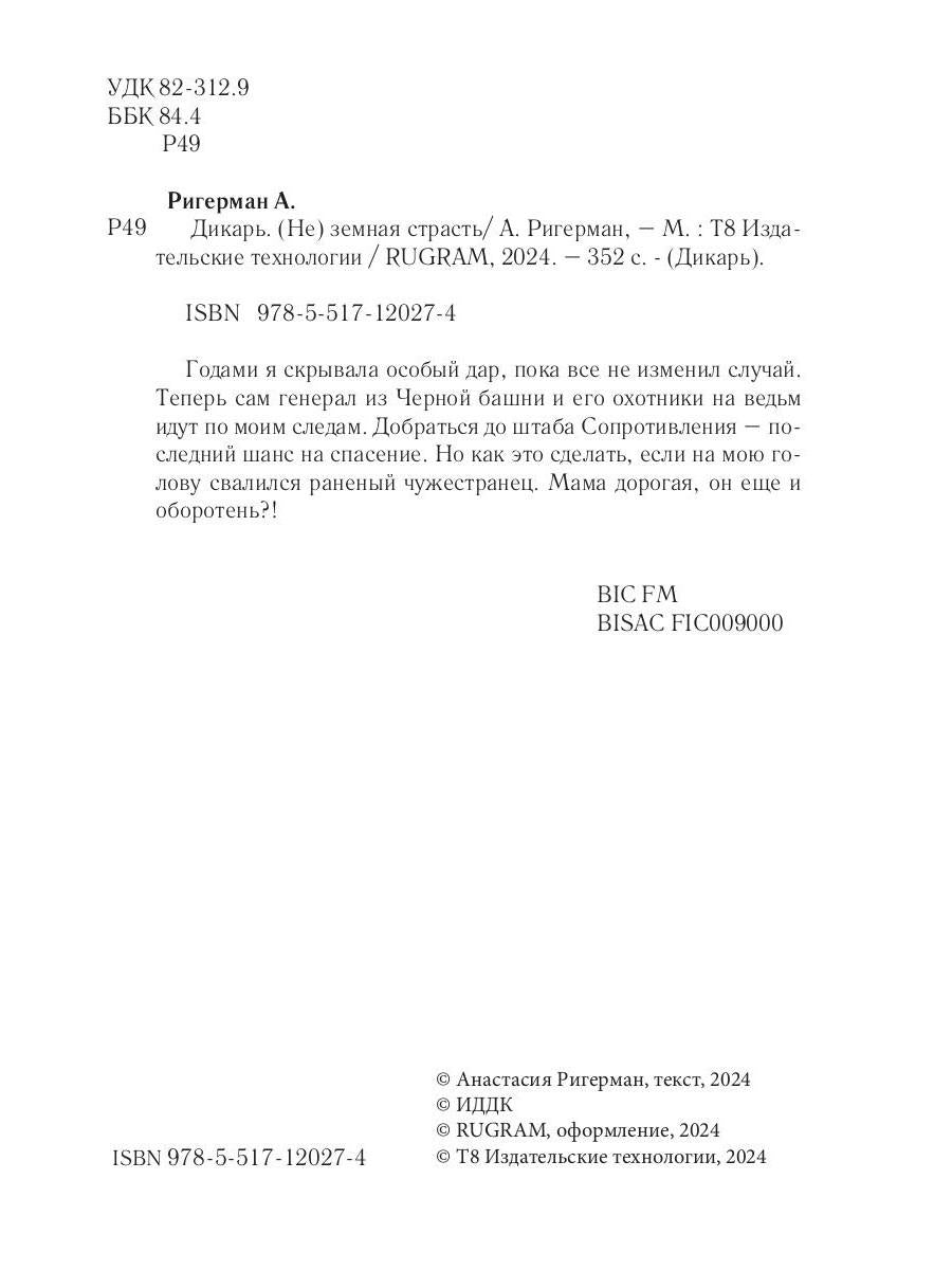 #ASTTD# Search Terms: Ригерман А. , Rigerman A. , Т8 RUGRAM , Publishing , T8 RUGRAM , Publishing , Дикарь , Dikar , 9785517120274 , 978-5-517-12027-4 , 2132593
