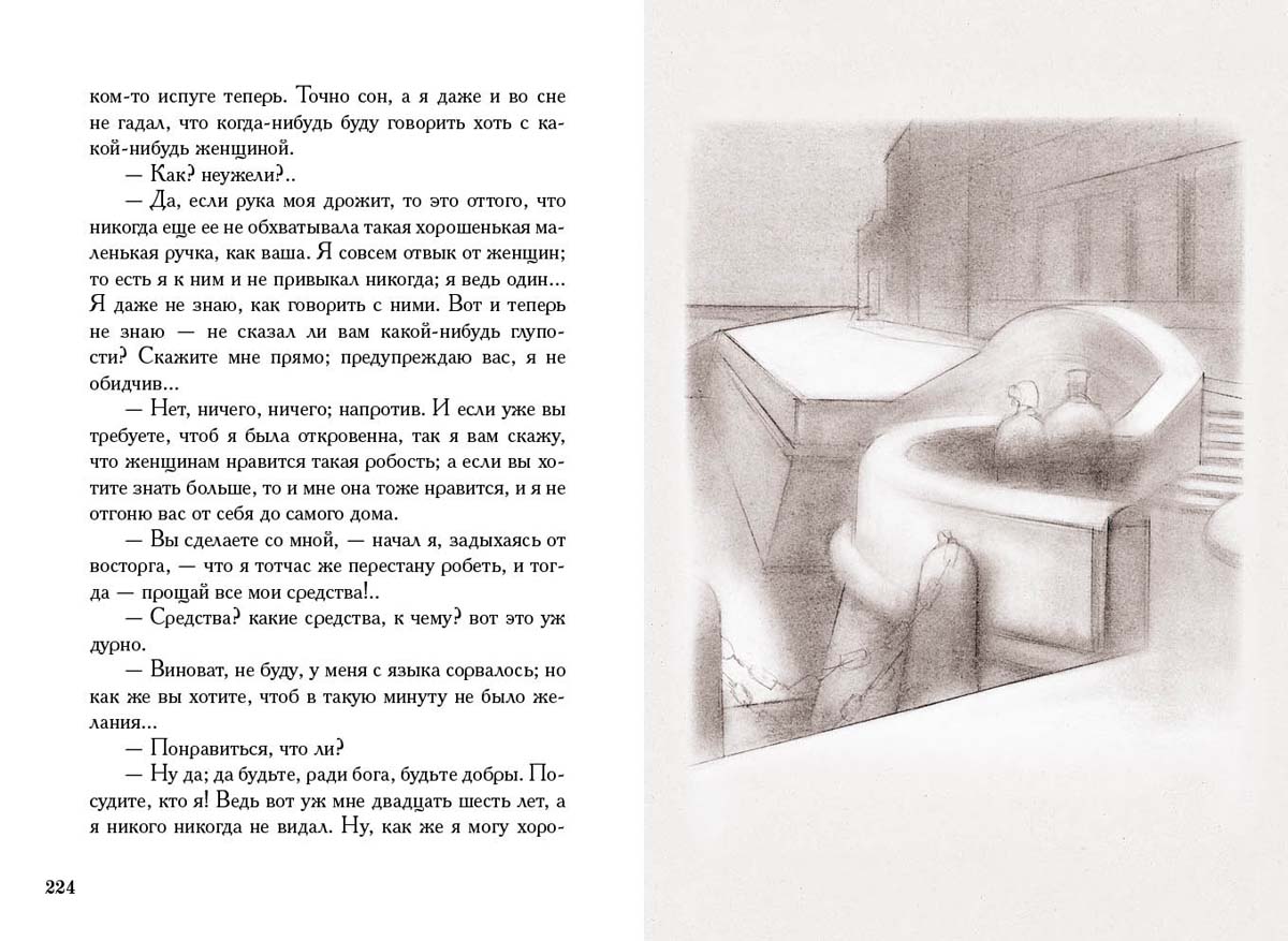 Handling time: 19 days «Бедные люди» и «Белые ночи» — ранние произведения Достоевского, появление которых произвело фурор среди критиков и читателей. «Г. Достоевский — имя совершенно неизвестное и новое, но которому, как кажется, суждено играть значительную роль в нашей литературе», — писал Белинский по случаю выхода «Бедных людей». Герои обоих произведений — люди «маленькие», «бедные», но чувства их не менее сильные, чем у состоятельных господ. Иллюстрации Б. М. Басова полны того петербургского флера призрачности, который только подчеркивает внутренние переживания героев. Примечания Б. Н. Тихомирова