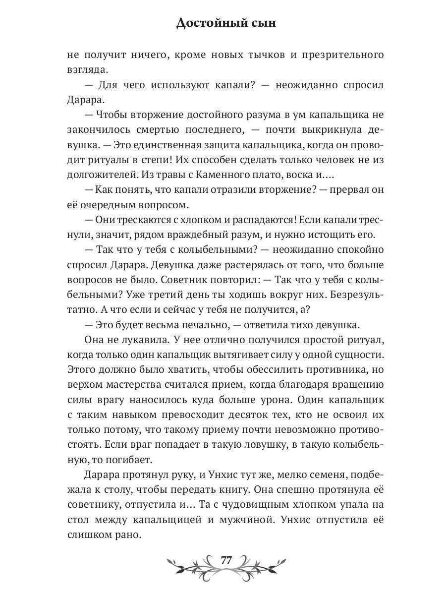 Handling time: 19 days Автор: Дутт Нора, «Достойный сын»: Давно затихла осада столицы, долгожители получили власть над страной. Теперь они готовят союзников к нескорой битве с настоящим врагом. Радис же больше не при делах. Она, лишившаяся своих учеников и магии, решает найти для себя другое место. Одна любопытная встреча в пути все меняет — девушка задумалась о том, что сможет вернуть себе магию. И тропа эта подведет ее опасно близко к истории о деяниях вечного зла и его Достойного сына.