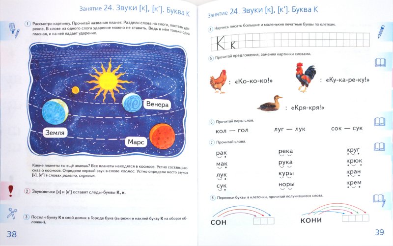 Les systèmes de robots, fournis par l'automobile, sont adaptés à la méthode d'observation du propriétaire et à la position du propriétaire, à l'exploitation des robots Д.Б. Элькониным. Le robot peut utiliser les paramètres suivants pour les achats en verre ; изучение парных по твердости и мягкости согласных звуков в рамках одного занятия; овладение чтением посредством складового метода; utiliser de nombreux symboles pour l'utilisation des connecteurs ; работу по составлению схем слов и предложений; знакомство детей с рядом грамматико-орфографических правил; Organisation et prise en charge de la préparation du bébé à des activités de loisirs, entretien et préparation des repas.