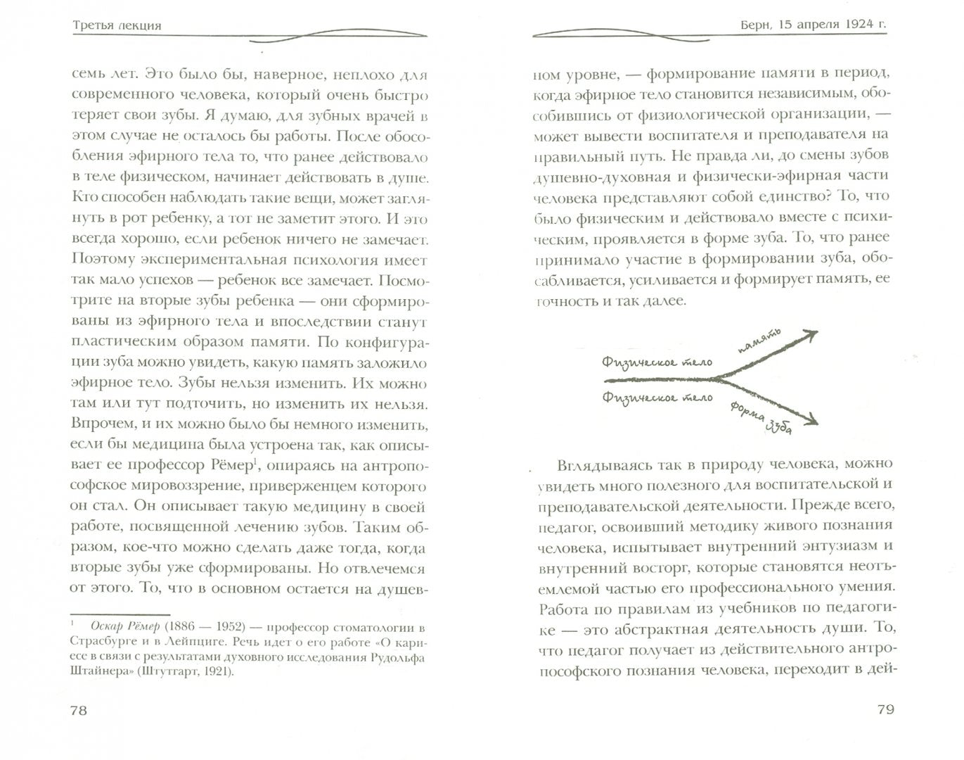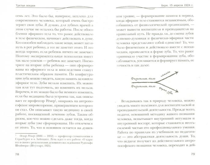 Handling time: 19 days В цикле лекций Рудольф Штайнер применяет полученные духовно-научным путем знания к педагогическим задачам, к проблемам воспитания и формирования человека. Ценность такого подхода состоит прежде всего в том, что знания такого рода о тонких процессах, сопутствующих взрослению человека, недоступны ни современной медицине, ни естественно-научным исследованиям, а сами эти процессы оказывают радикальное воздействие на память, мышление и даже на формирование моральных принципов человека. Исходя из этого автор дает практические рекомендации как лучше преподносить учебный материал, в какой последовательности и когда именно. Рудольф Штайнер поясняет, как авторитет учителя, его личные качества и подход к обучению влияют на развитие способностей ребенка, и как неконтролируемый темперамент воспитателя может привести к тем или иным болезням в более поздний период жизни ученика. Затрагивается также вопрос о влиянии различных направлений искусства на развитие душевных качеств ребенка и формирование гармоничного восприятия реального мира.