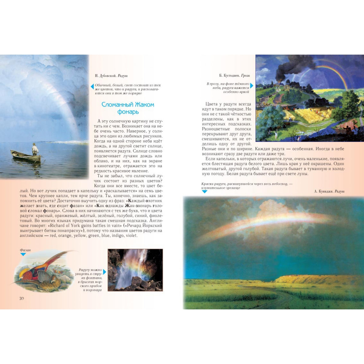 Книга познакомит юных читателей не только с известными им природными явлениями, такими как радуга, восход и заход солнца, дождь, снег, ветер и гроза, но и с более редкими – полярным сиянием, миражами, явлением зеленого луча, деятельностью вулканов и т.п.