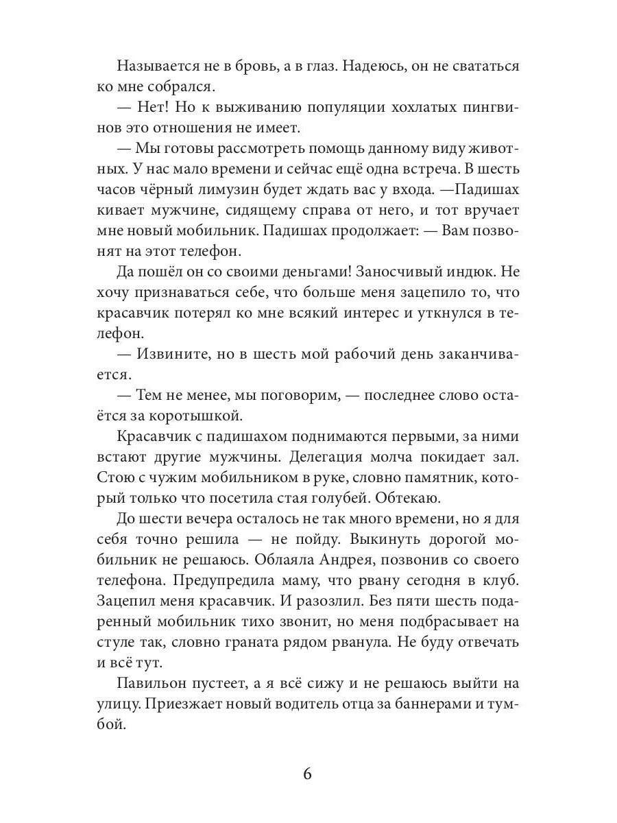 Handling time: 14 days Автор: Крынская Юлия, «Заноза для шейха»: Я искала инвестора для спасения хохлатых пингвинов, а наглый, но до безумия очаровательный шейх искал жену. Он готов на всё ради меня. Даже обещает переселить всю популяцию в свой дворец, лишь бы я променяла заснеженной Питер на жаркую пустыню. Но он не знает, что я поцелована судьбой ещё при рождении. Ведь я третья дочь великого футболиста и магната Фрола Горина. И просто так мой папа меня не отдаст. Долгожданная четвёртая книга из цикла «Пять дочерей футболиста Горина».
