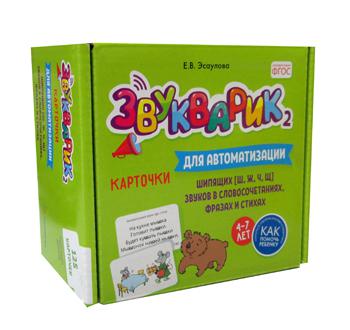 Handling time: 24 days В пособие "Звукварик 2" для автоматизации и дифференциации шипящих звуков входит 125 карточек с картинками и речевым материалом, в котором практически не встречаются свистящие [с, с', з, з', ц] и ротовые сонорные [л, л', р, р'] звуки. А также есть материал на дифференциацию шипящих и свистящих звуков.Предназначено для использования логопедами и воспитателями на групповых и индивидуальных занятиях в дошкольных учреждениях с детьми 4-7 лет и в начальной школе, а также родителями для обучения в домашних условиях.