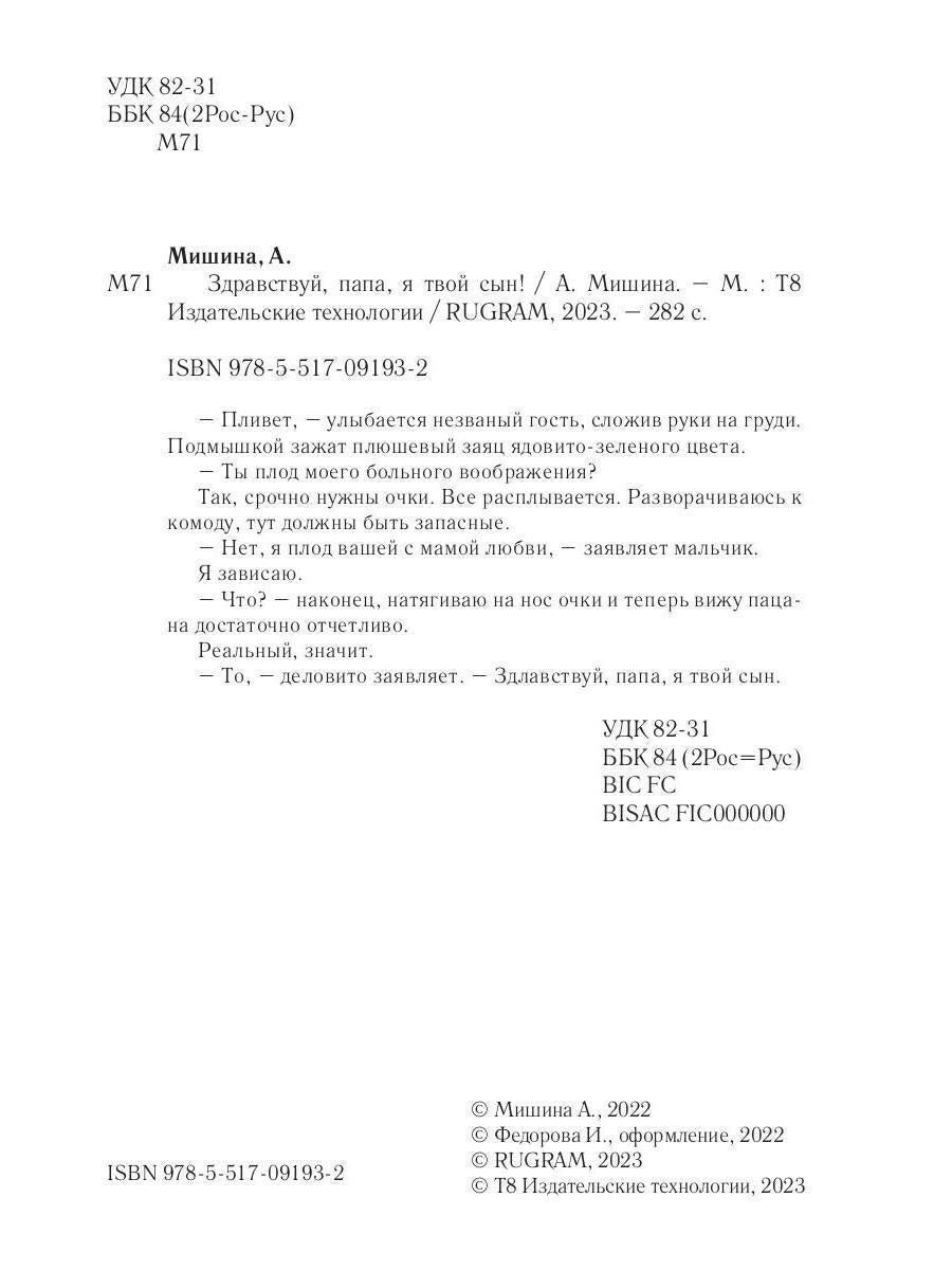 Handling time: 19 days Автор: Мишина Анна, «Здравствуй, папа, я твой сын!»: — Пливет, — улыбается незваный гость, сложив руки на груди. Подмышкой зажат плюшевый заяц ядовито-зеленого цвета.
