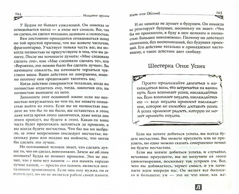 Handling time: 25 days Аннотация Мудрецы дзен говорят, что будущее развивается из нынешних событий, идей и взглядов, и предсказать его нельзя. Согласитесь, здравое зерно в этом есть: невозможно составить гороскоп Будды или прочитать его судьбу по руке - ведь он настолько свободен от прошлого и настолько спонтанен в настоящем! ИГРА ЖИЗНИ Ошо поможет вам понять, что если вы живете "здесь и сейчас", то жизнь становится необычайно яркой, а каждое мгновение - "золотым". И это здорово, ведь предсказуемая жизнь была бы слишком скучной! Древние мудрецы убеждены: расклады карт и другие способы гадания необходимы как раз для того, чтобы избавиться от скучной жизни, изменить себя и дать импульс для создания яркого существования... В книге приведены толкования Старших и Младших Арканов, сделанная Ошо, а также интерпретация всех мастей Таро. Это настоящий "must have" для владельцев феноменально популярной колоды "Ошо Дзен Таро", а также практиков Таро Райдера-Уэйта. О чем книга Чем бы вы ни занимались - астрологией, составлением гороскопа, хиромантией, гаданием на И-Цзин или Таро, - это, как и все, что касается будущего, является, прежде всего, чтением подсознания человека. Оно не имеет никакого отношения к будущему. Скорее, оно имеет отношение к настоящему. Ошо убежден, что предсказание возможно лишь в силу того, что люди живут механично. Неосознанный человек, как правило, снова и снова повторяет свое прошлое и не может привнести в свою жизнь ничего нового. Именно поэтому и работают все существующие методы предсказания будущего - и они перестают действовать, если люди становятся более осознанными. В этой книге вы найдете описания всех мастей Таро и всех Старших и Младших Арканов, сделанные Ошо. Она даст вам новое понимание того, как работают карты Таро, поможет избавиться от вечно повторяющегося прошлого и сделать каждый свой день уникальным! Почему книгу стоит прочитать Благодаря этой книге вы начнете использовать Таро не только для гадания, но и для саморазвития и духовного роста. Вы найдете несколько иную трактовку давно знакомых вам карт и сможете самостоятельно делать расклады, исходя из этого нового знания. Ну и, конечно, книга подарит вам много приятных мгновений благодаря чудесным глубоким комментариям Ошо. Для кого эта книга ИГРА ЖИЗНИ предназначена, прежде всего, для тех, кто практикует "Ошо Дзен Таро", чтобы углубить и расширить их понимание карт. Эти читатели сразу поймут, как использовать предлагаемую книгу в качестве ценного дополнения к уже имеющемуся у них руководству, которое продается в комплекте с картами. Книга понравится всем, кто интересуется духовным ростом и саморазвитием. Те, кто давно гадают на Таро или только начинает овладевать этими навыками - те, кто используют в своей работе другие, более традиционные карты, такие как колоды Таро Кроули и Райдера-Уэйта, - также оценят книгу по достоинству. Почему решили издать Больше 10 лет назад было впервые опубликовано революционное "Ошо Дзен Таро". С тех пор эта необычайно красивая и общедоступная колода карт стала современной классикой и пользуется огромным успехом. В помощь нашим читателям мы решили опубликовать руководство к нему, чтобы сделать путь к познанию себя легче, интереснее и ярче. Ключевые понятия Таро, Арканы, энергия, действие, отклик, чувство, эмоции, знание, мысли, реальность.