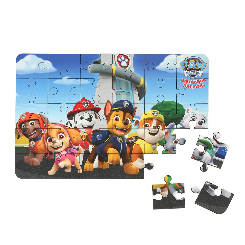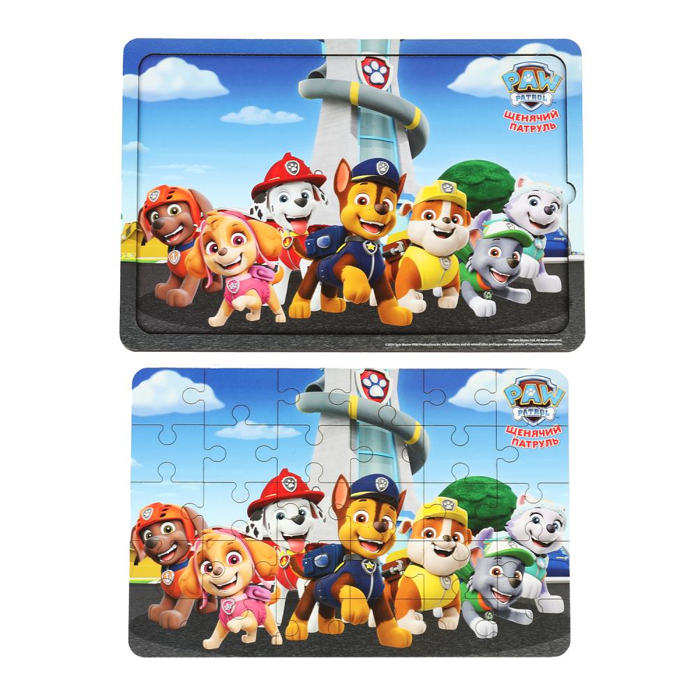 Игрушка деревянная пазл 28*19.5 см. Щенячий Патруль терм. пакет Буратино в кор.28шт