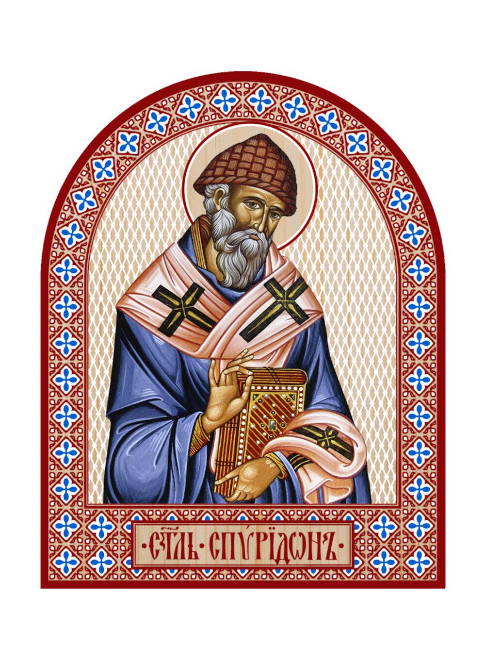 Икона аркой Спиридон Тримифунтский (голубое облачение), свт. (на дереве): 95 х 120