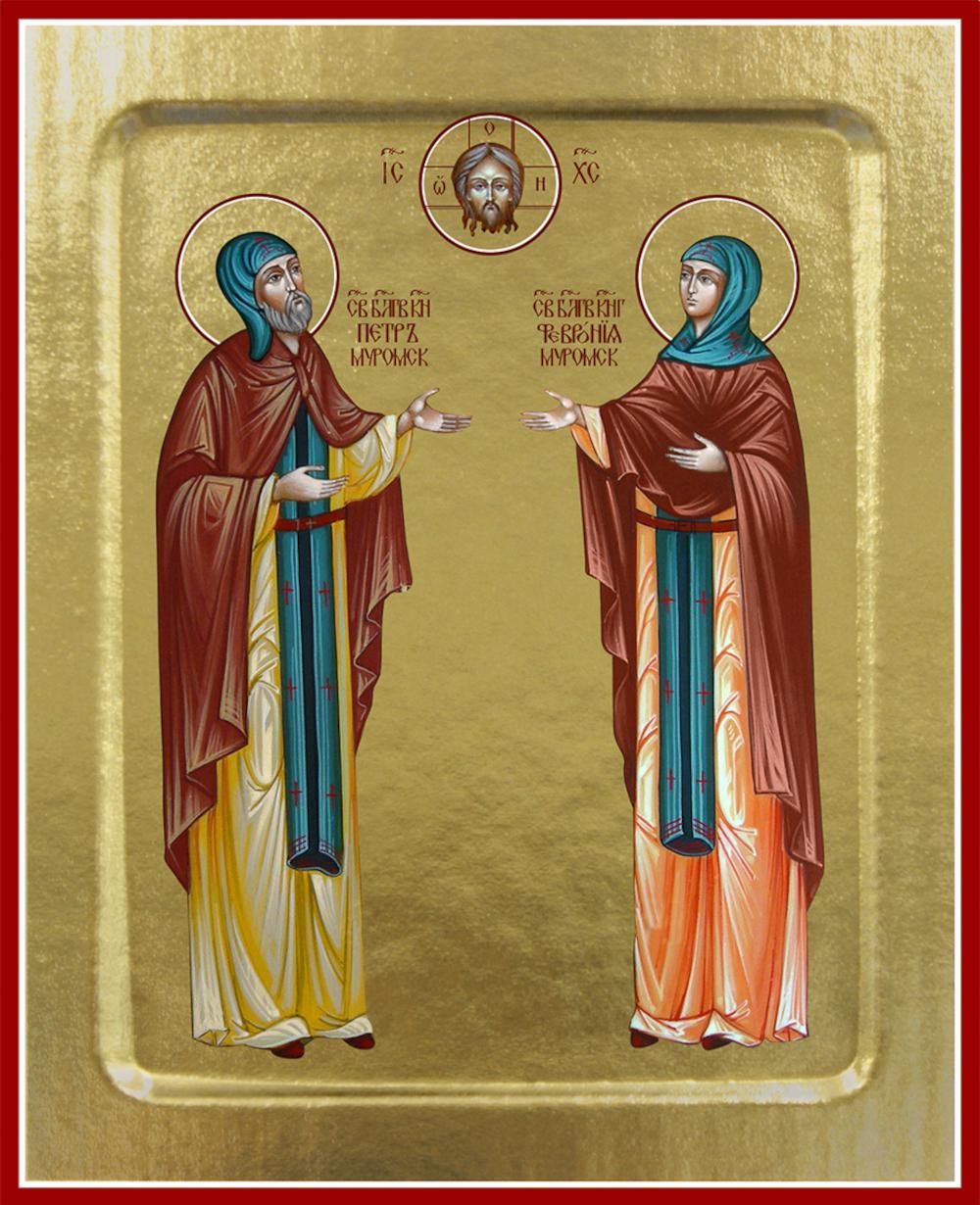 Икона Петра и Февронии Муромских, благоверных (каноническая, коричн.) (на дереве): 125 х 160