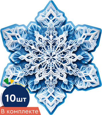 *КБ-17421 Набор украшений со скотчем. Снежинка (10 шт., двухсторонний плакат А4, ВД-лак)