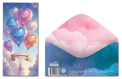 КДС-17526 Конверт для денег на склейке. Поздравляем! (шарики)