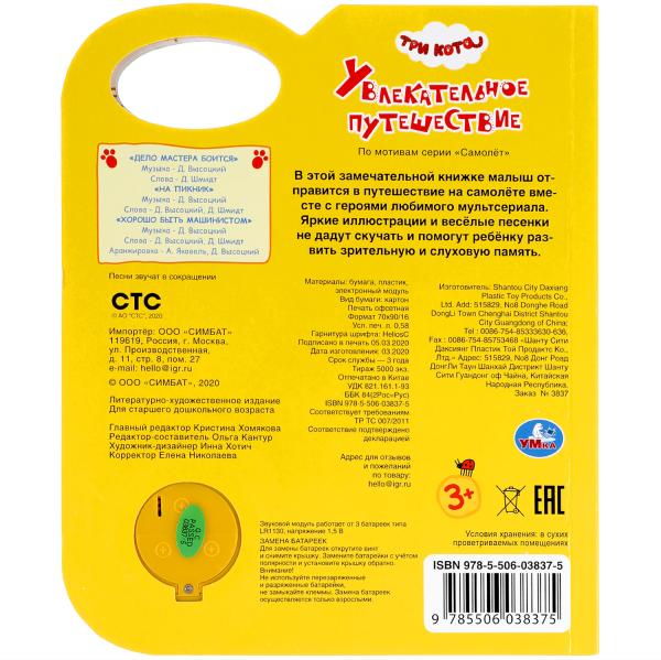 Книга детская увлекательное путешествие ТРИ КОТА (1 кн. 3 пес.) 152х185мм 8 стр Умка