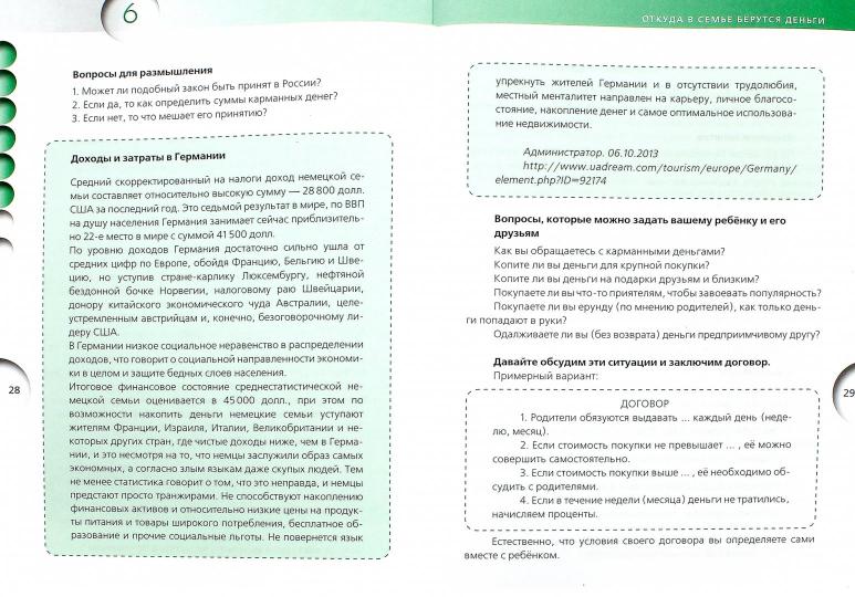 Курс имеет практическую направленность и даёт возможность каждому ребёнку получить представление о деньгах, финансах семьи, управлении бюджетом семьи и её взаимодействии с финансовыми институтами. Позитивное отношение родителей к изучению их детьми этого курса и их активное участие в этом процессе будет способствовать реализации учебных целей. В пособии подробно описаны формы взаимодействия родителей с детьми, с учителем. Приведены виды исследовательских и творческих работ, игры, моделирующие жизненные ситуации.2-е издание.