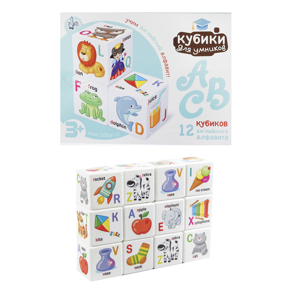 Кубики пластиковые "Кубики для умников. Английский алфавит" 12 шт (sans autocollants)