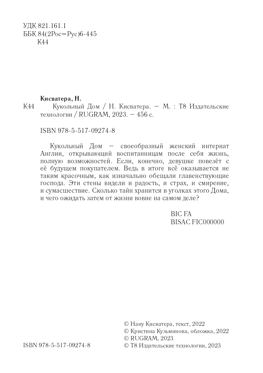 Handling time: 19 days Автор: Кисватера Нану, «Кукольный Дом»: Кукольный Дом — своеобразный женский интернат Англии, открывающий воспитанницам после себя жизнь, полную возможностей. Если, конечно, девушке повезёт с её будущем покупателем. Ведь в итоге всё оказывается не таким красочным, как изначально обещали главенствующие господа. Эти стены видели и радость, и страх, и смирение, и сумасшествие. Сколько тайн хранится в уголках этого Дома, и чего ожидать затем от жизни вовне на самом деле?