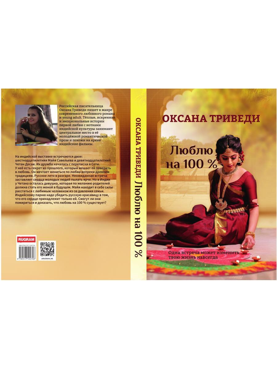 Handling time: 19 days Автор: Триведи Оксана, «Люблю на 100 %»: На индийской выставке встречаются двое: шестнадцатилетняя Майя Савельева и девятнадцатилетний Четан Десаи. Их дружба началась с переписки в Сети. У неё есть секрет из прошлого, который мешает ей поверить в любовь. Он мечтает жениться по любви вопреки древним традициям. Русское лето в разгаре. Неожиданная встреча заставляет сердца молодых людей пылать ярче. Но в Индии у Четана осталась девушка, которая по желанию родителей должна стать его женой в будущем. Майя находит в себе силы расстаться с любимым человеком из-за давления семьи. Индийскому парню надо убедить русскую красавицу в том, что его сердце принадлежит только ей. Смогут ли они помириться и доказать, что любовь на 100 % существует?