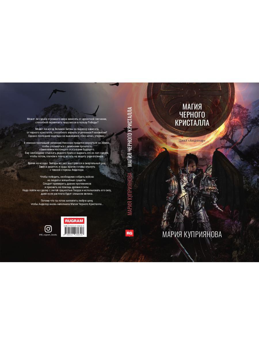 Handling time: 19 days Автор: Куприянова Мария, «Магия черного кристалла»: Может ли судьба огромного мира зависеть от крохотной песчинки, способной перевесить чашу весов в пользу Победы? Может ли исход Великой Битвы за Анделор зависеть от черного кристалла, способного вернуть утраченное Равновесие? Однако последняя надежда на выживание, «Око ночи», утеряна… В поисках пропавшей реликвии Николаю придется вернуться на Землю, чтобы столкнуться с демонами прошлого, сомнениями настоящего и угрозами будущего. Ему необходимо отыскать родного брата и вырвать его из лап смерти, чтобы потом, плечом к плечу, встать на защиту родного мира. Время на исходе. Звезды вот-вот выстроятся в смертельный ряд. Завеса рушится, и орды врагов готовы хлынуть с темной стороны Анделора. Чтобы победить, необходимо собрать войско из людей и волшебных существ. Следует примирить давних противников и призвать на помощь древние силы. Надо пойти на сделку с лютой сущностью Гворра и использовать его силу, даже если расплата будет слишком велика. Потому что ты готов заплатить любую цену, чтобы Анделор вновь наполнила Магия Черного Кристалла…