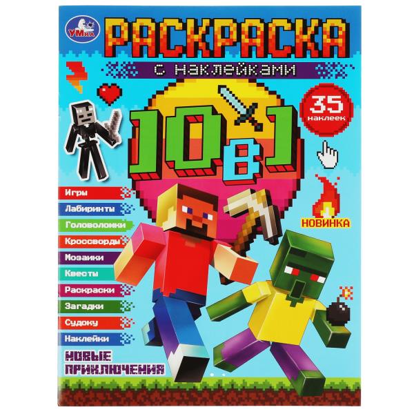 Майнкрафт. Новые приключения. Раскраска 10 в 1 с наклейками. 215х285 мм. 16 стр. Умка в кор.50шт