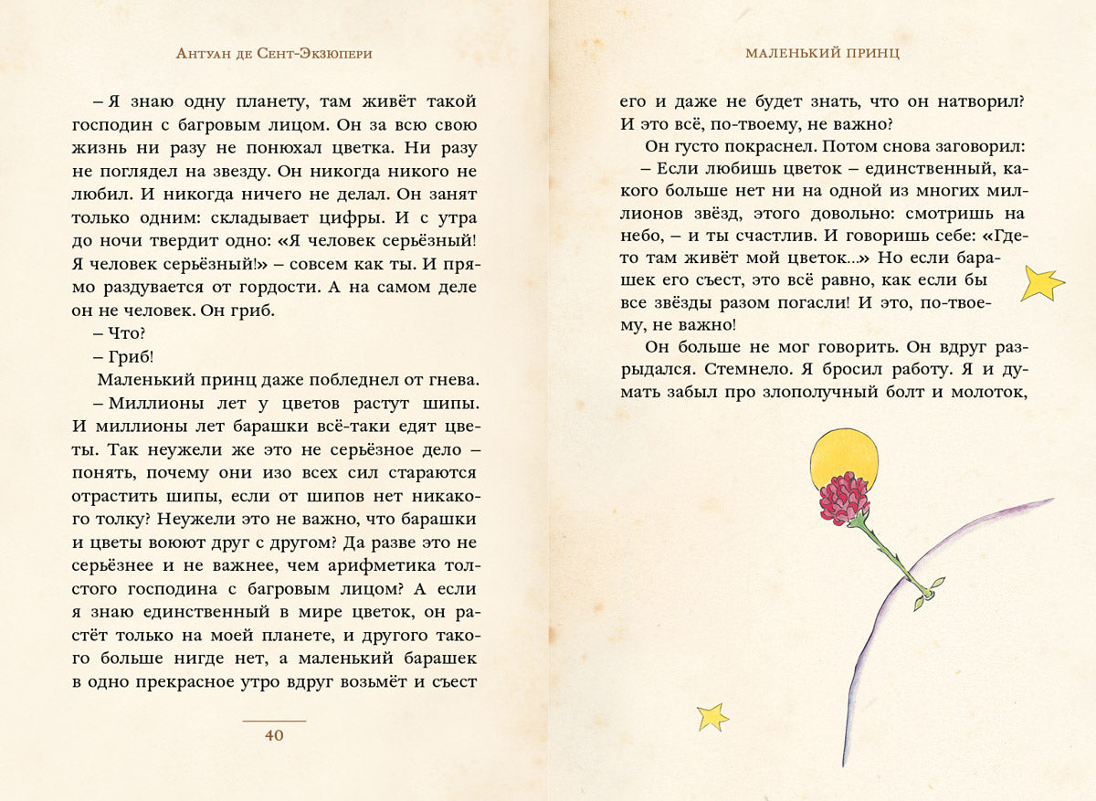 Вот уже более семидесяти лет необычная и трогательная история о маленьком мальчике, путешествующем с планеты на планету в поисках самого важного в жизни, покоряет сердца читателей. И каждый из них находит в этой истории свой смысл. Дети очаровываются хрупким, но очень храбрым Маленьким принцем, а взрослые находят глубокий смысл в его мудрых рассказах.