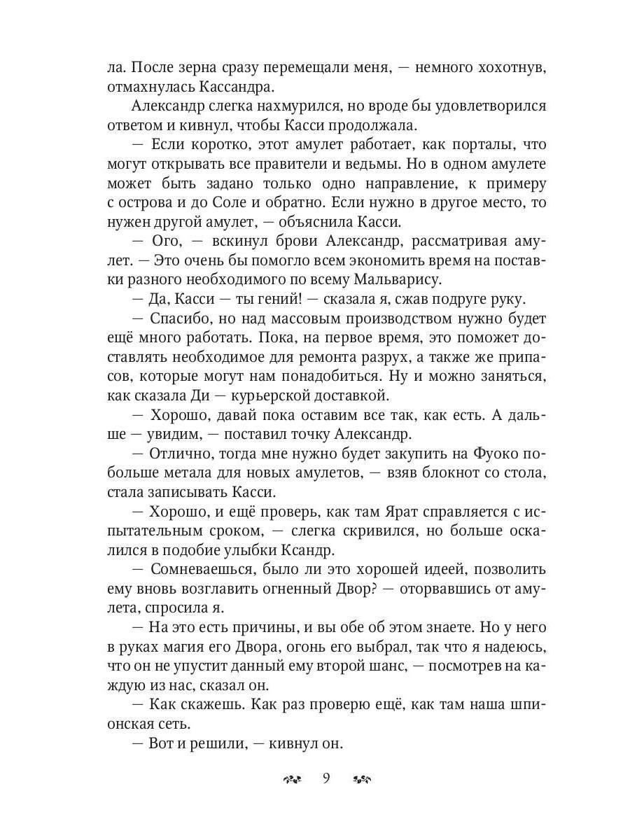 Handling time: 19 days Автор: Минти Бук, «Мальварис. Магия Истинной Королевы»: В Мальварисе наступил мир и спокойствие. А значит пришло время королевской свадьбы. Суета и подготовка к торжеству в самом разгаре, когда приходит новость со Двора Нэве о беде. А во Дворе Фуоко находят потерянную реликвию, что таит в себе опасность. Александр и Давина вновь с головой ныряют в пучину приключений и тайн. Но в этот раз тайны слишком глубоко уходят в прошлое. В настоящем же им только предстоит узнать, как обычная месть отвергнутой женщины может освободить монстров потерянного Двора, которые много веков жаждали расплаты. Кого же так боится Король из темного прошлого своих предков? И что же в прошлом найдет Королева, чтобы вернуть в Мальварис мир? Они идут под знаком тьмы, чтобы забрать все мысли, тайны и желания. Один мир. Семь Дворов. Сплошные тайны. В чьих руках окажется будущее Мальвариса? И кто повинен в бедах прошлого?