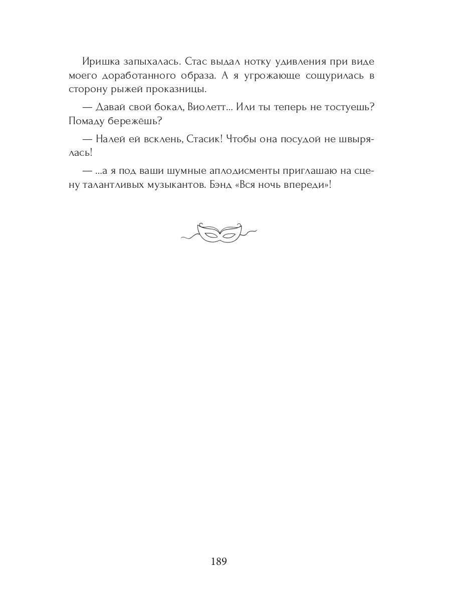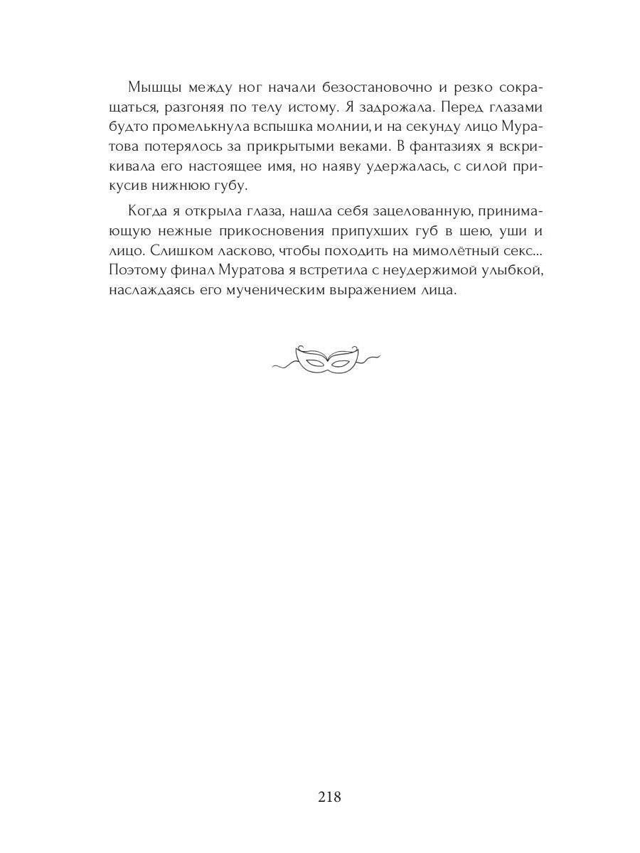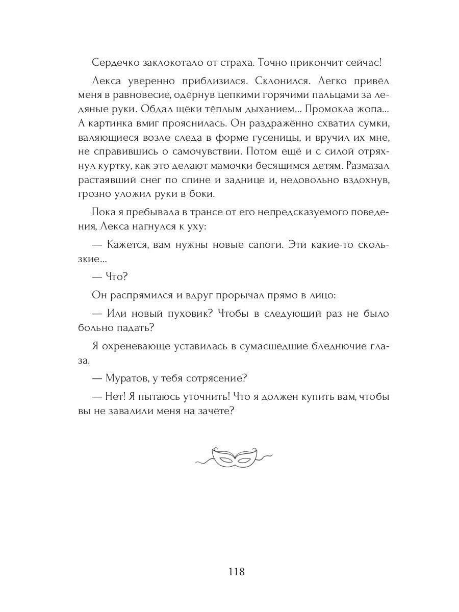Handling time: 14 days Автор: Dragonfly Марина, «Маска»: Вилке Сергеевне чуждо творчество и сострадание к студентам. Необходимость организовать бал-маскарад ставит её в неловкое положение. Зато удачно играет на руку музыканту Лексе Муратову, прогулявшему все пары грымзы в семестре. Только дерзость не спрятать под маской. Вилка начинает выяснять личность обаятельного инкогнито и догадывается, что лицо — далеко не всё, что он скрывает. С юмором о настоящей любви.