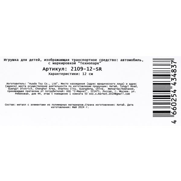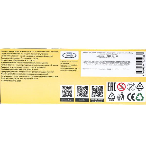 "Игрушка "Машина металл ваз-2109 "СПУТНИК" 12 см, двери, багаж, инер, серебряный, кор. Технопарк в кор.2*36шт". Taux : 0,079.