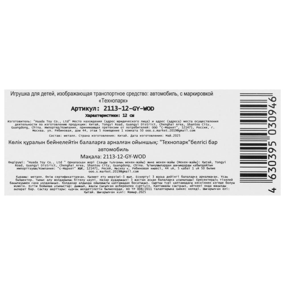 Machine en métal vaz-2113 12 cm, double, sac, argent, verre, cor. Parc technologique dans le cor.2*36шт