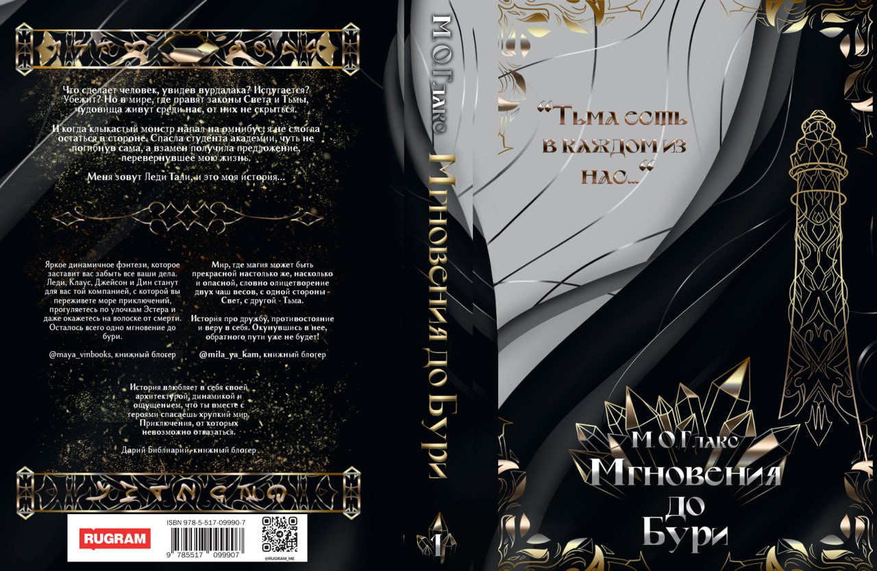 Handling time: 19 days Автор: Глакс М.О., «Мгновения до бури»: Что сделает человек, увидев вурдалака? Испугается? Убежит? Но в мире, где правят законы Света и Тьмы, чудовища живут среди нас, от них не скрыться. И когда клыкастый монстр напал на омнибус, я не смогла остаться в стороне. Спасла студента Академии, чуть не погибнув сама, а взамен получила предложение, перевернувшее мою жизнь. Меня зовут Леди Тали, и это моя история… 5 причин купить «Мгновения до бури» М. О. Глакс: 1. Живые и неидеальные герои — одних хочется ударить, в других можно легко узнать себя. 2. Пугающие и хитрые злодеи, запоминающиеся своей безжалостностью. 3. Целая вселенная со своими законами, историей и тайнами. Одновременно, похожая на нашу, и в то же время безмерно чужая и далекая. 4. Закрученный сюжет с детективными нотками, где дружба, учеба и магия незаметно перемежается с вечной борьбой Света и Тьмы. 5. Яркий экшн создает впечатление, что вы смотрите кино, а не читаете книгу.